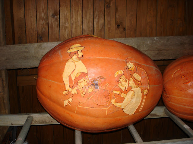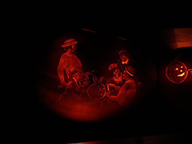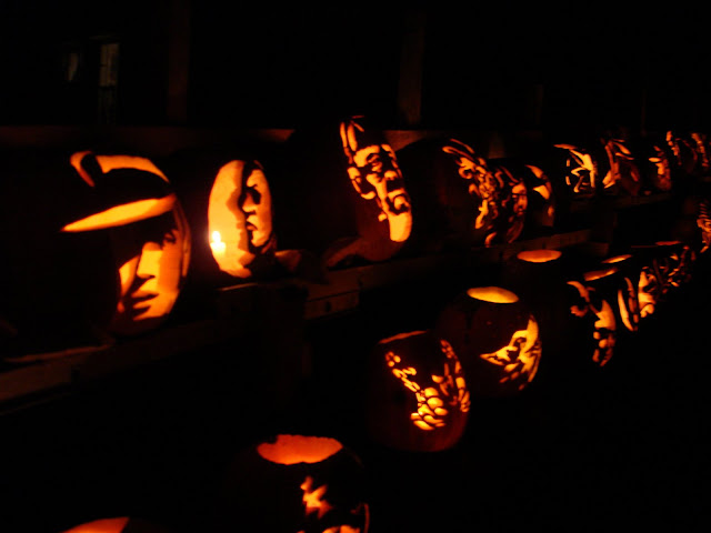 And it was even better than that: About 200 carved pumpkins, lining both sides of a super long drive-way, with just out of this world carvings in them. We're going to take video tomorrow night when we go back (it's running 2 days; I forgot my camera had video-capability), but hopefully these pictures give you an idea: